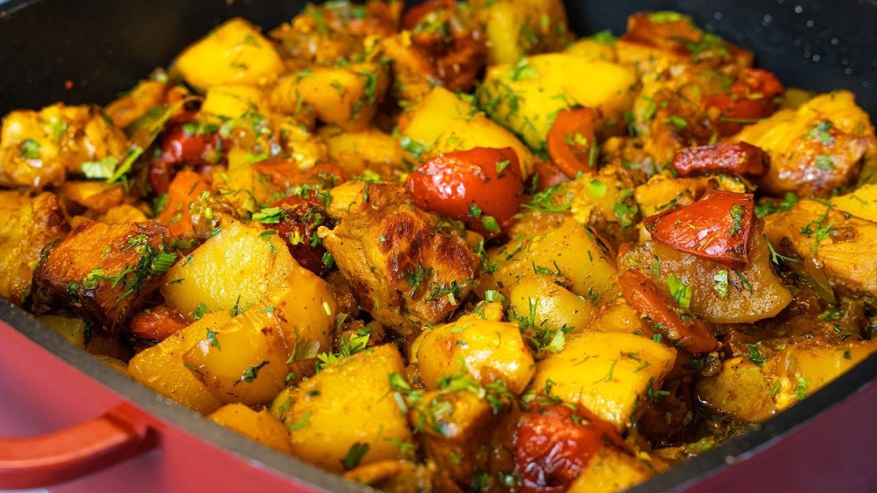 Если жаркое, то только такое! Жаркое по-деревенски. 🍲🍲🍲 Ингредиенты: ➊ Мясо - 1 кг ➋ Картошка - 1 кг ➌ Лук - 250 г ➍ Сладкий перец - 400 г ➎ Морковь - 200 г ➏ Чеснок - 20 г ➐ Кинза - 30 г ➑ Петрушка - 15 г ➒ Укроп - 15 г ❿ Лавровые листья - 2 средних или 3 маленьких ➊➊ Чёрный перец - 1 ч.л. ➊➋ Сладкая паприка - 1 ч.л. ➊➌ Хмели сунели - 1 ч.л. ➊➍ Острый молотый перец - по вкусу ➊➎ Молотый кориандр - 0,5 ч.л. ➊➏ Соль - по вкусу ➊➐ Бульон (куриный или овощной) - 200 мл 🍲🍲🍲 00:00 - начало 00:37 - нарезаем мясо 01:07 - нарезаем морковь 01:19 - очищаем и режем сладкий перец 02:06 - нарезаем лук 02:26 - нарезаем картофель 02:41 - обжариваем овощи по отдельности 04:58 - объединяем ингредиенты 05:11 - добавляем специи и бульон 06:10 - про зелень 06:46 - добавляем зелень и чеснок 07:49 - дегусташвили #кухнясакцентом #жаркое #жаркоеподеревенски