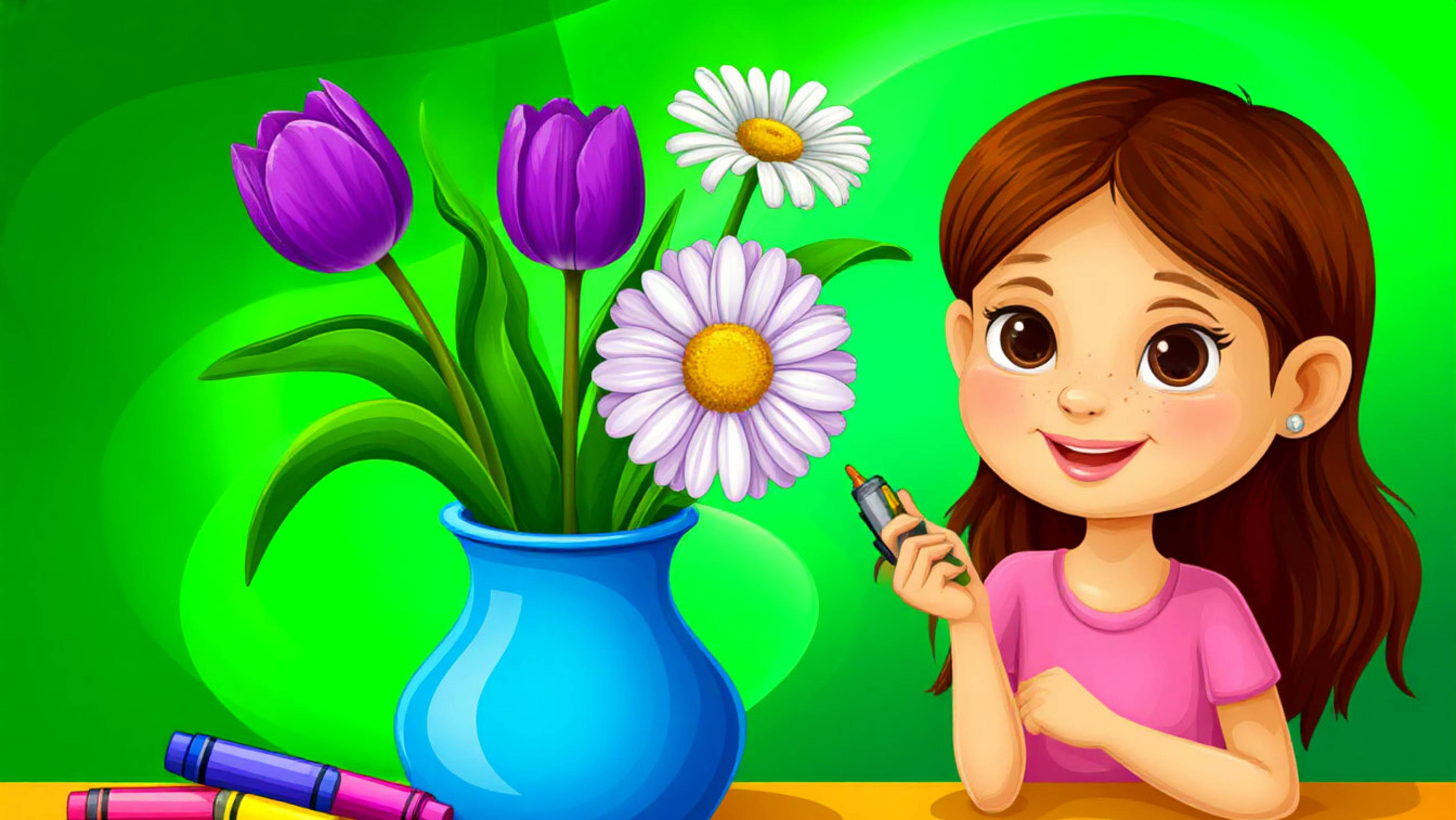 Для детей Цветы в вазе рисуем раскрасим Рисунки развивающие познавательные для малышей